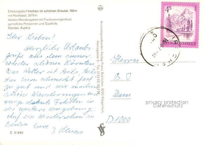 73629116 alte Postkarte Irschen Kaernten mit Hochstadl postalisch gelaufen Erhaltung siehe scans [WerneD78] KatCode: 11390212020611