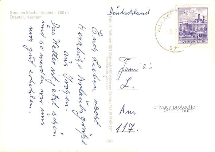 73520041 alte Postkarte Irschen Kaernten Panorama Kirche Strassenpartie Rathaus postalisch gelaufen Erhaltung siehe scans [WerneD78] KatCode: 11390212020611