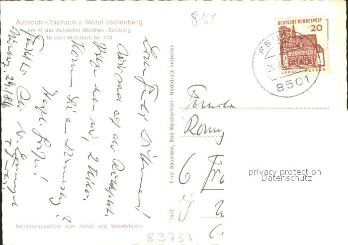 72168862 alte Postkarte Irschenberg Autobahn Rasthaus und Motel Alpenpanorama postalisch gelaufen Erhaltung siehe scans KatCode: 11110009182123