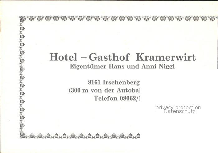 72577762 Irschenberg Hotel Gasthof Kramerwirt postalisch nicht gelaufen Werbekarte (keine Postkarte) Erhaltung siehe scans [FriedD77] KatCode: 11110009182123