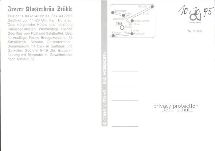 72375775 alte Postkarte Irsee Hotel Restaurant Irseer Klosterbraeu Stueble Gaststube Zimmer Weinstand postalisch gelaufen Erhaltung siehe scans KatCode: 11110009777139