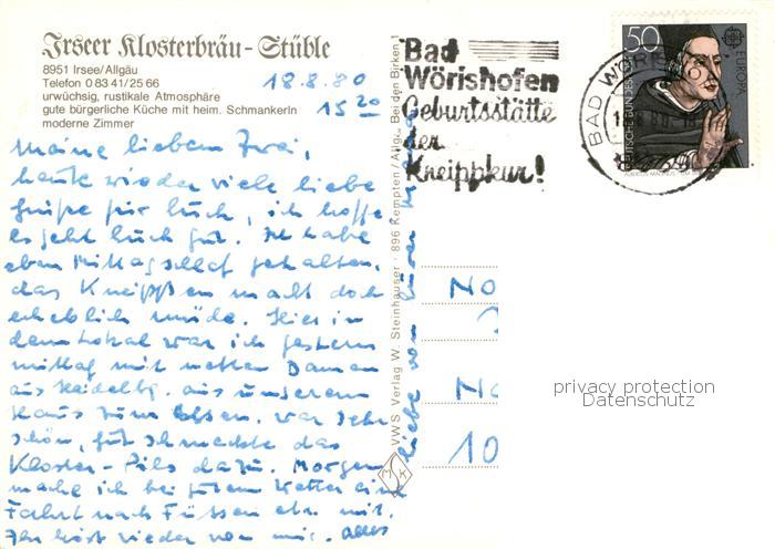 73843948 alte Postkarte Irsee Irseer Klosterbraeu Stueble postalisch gelaufen Erhaltung siehe scans [WerneD78] KatCode: 11110009777139