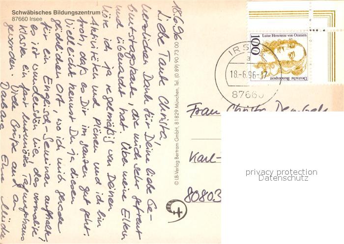 72948274 alte Postkarte Irsee Schwaebisches Bildungszentrum postalisch gelaufen Erhaltung siehe scans [KathaD81] KatCode: 11110009777139