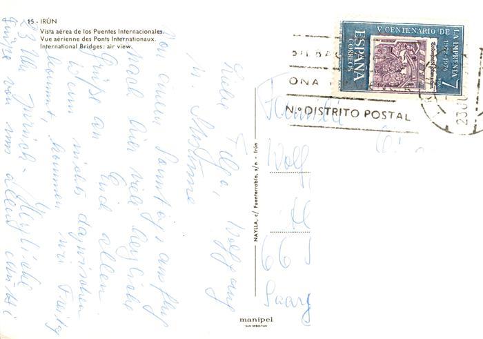 73905486 old postcard Irun Gipuzkoa ES Vista aerea de los Puentes Internacionales postalisch gelaufen Erhaltung siehe scans [FriedD77] KatCode: 11510