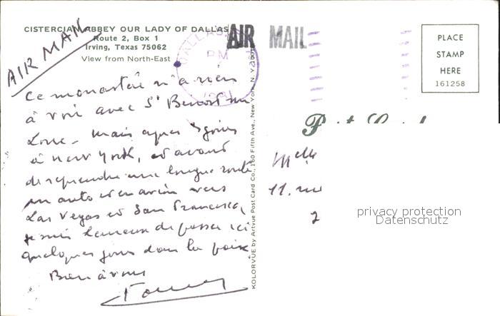 72133443 old postcard Irving Texas Cistercian Abbey Our Lady of Dallas postalisch gelaufen Erhaltung siehe scans KatCode: 14140460000000