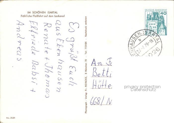 72146240 alte Postkarte Isartal Floessfahrt im Isarkanal postalisch gelaufen Erhaltung siehe scans KatCode: 11110009184139