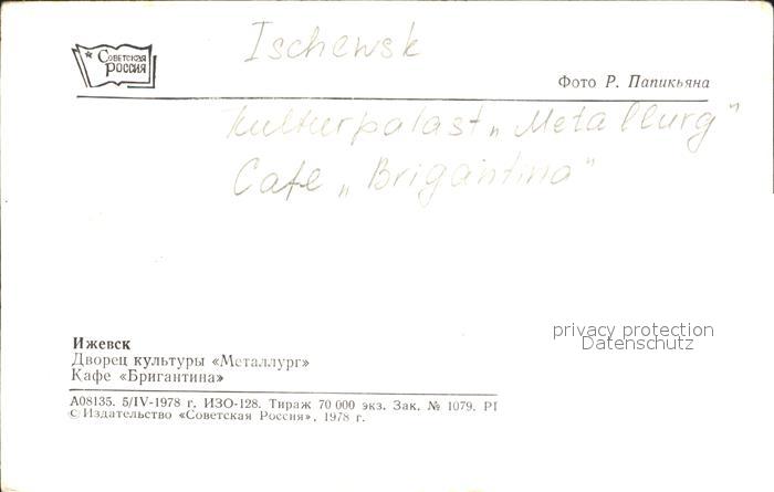 Ischewsk Kulturpalast Metallurg Cafe Brigantina postalisch nicht gelaufen Erhaltung siehe scans