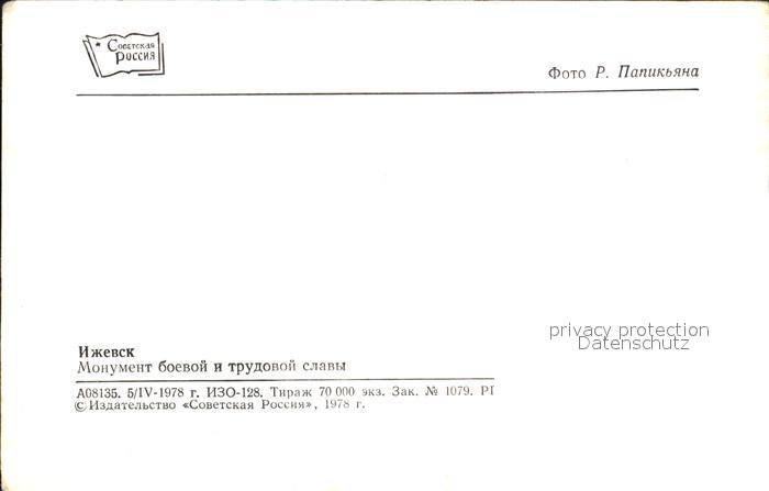 Ischewsk Monument postalisch nicht gelaufen Erhaltung siehe scans [NatalD47 kv013box]