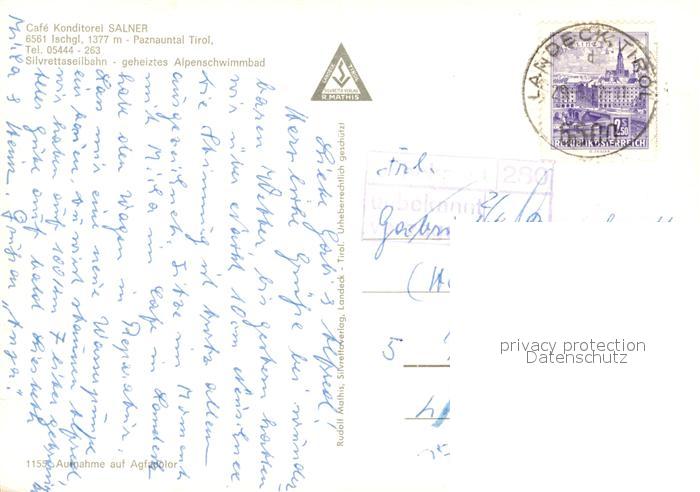 73049877 alte Postkarte Ischgl Cafe Salner Schwimmbad postalisch gelaufen Erhaltung siehe scans [KathaD81] KatCode: 11390334070608