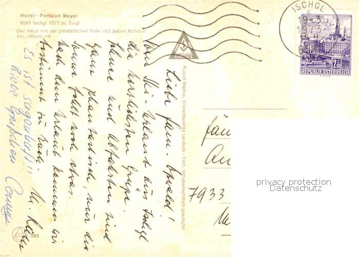 42622215 alte Postkarte Ischgl Hotel Pension Meyer Seilbahn postalisch gelaufen Erhaltung siehe scans [WerneD78] KatCode: 11390334070608