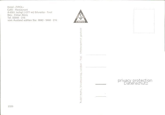 11931833 Ischgl Hotel Tirol Cafe Restaurant postalisch nicht gelaufen Erhaltung siehe scans KatCode: 11390334070608