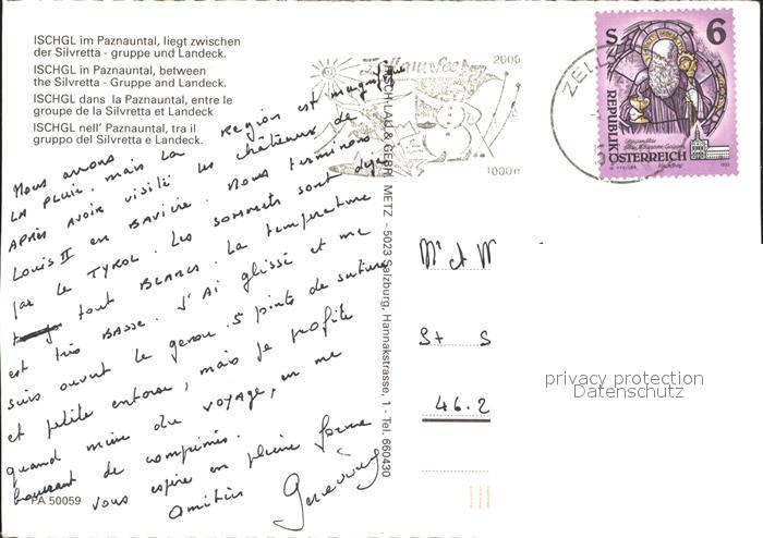 72285335 alte Postkarte Ischgl Paznauntal postalisch gelaufen Erhaltung siehe scans KatCode: 11390334070608
