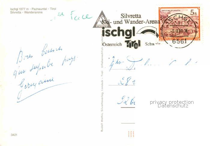 72752798 alte Postkarte Ischgl Paznauntal Silvretta Wanderarena postalisch gelaufen Erhaltung siehe scans [KathaD81] KatCode: 11390334070608