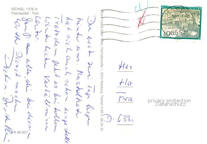 73843444 alte Postkarte Ischgl Paznauntal postalisch gelaufen Erhaltung siehe scans [FriedD77] KatCode: 11390334070608