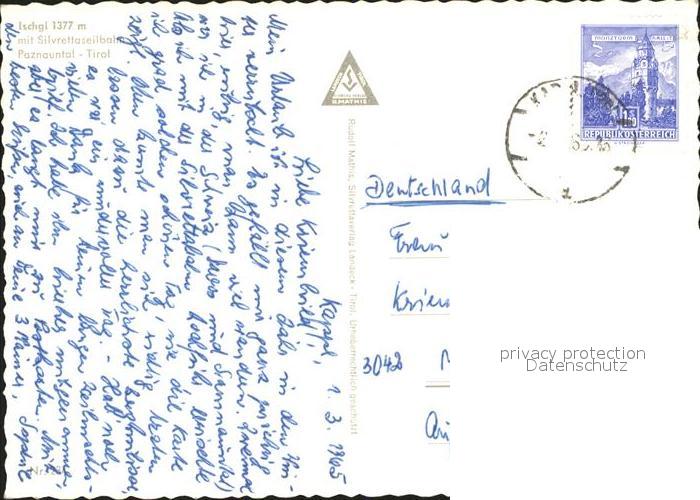 71930000 alte Postkarte Ischgl Silvrettaseilbahn Paznauntal postalisch gelaufen Erhaltung siehe scans KatCode: 11390334070608