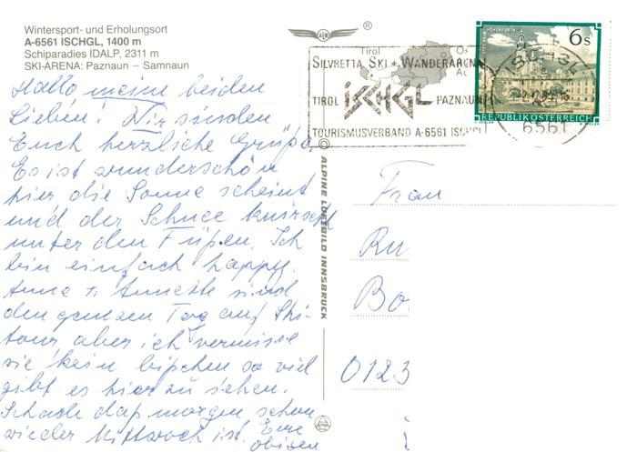 73904798 alte Postkarte Ischgl Wintersportort in den Alpen postalisch gelaufen Fliegeraufnahme Erhaltung siehe scans [FriedD77] KatCode: 11390334070608