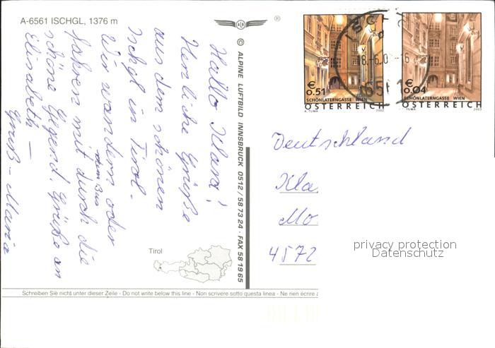 72255568 alte Postkarte Ischgl Wintersportplatz Sommerpanorama Alpen Fliegeraufnahme postalisch gelaufen Erhaltung siehe scans KatCode: 11390334070608
