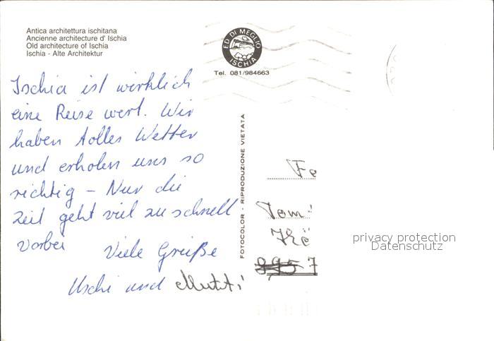 old postcard Ischia Antica architettura ischitana alte Architektur Fischerboot postalisch gelaufen Erhaltung siehe scans