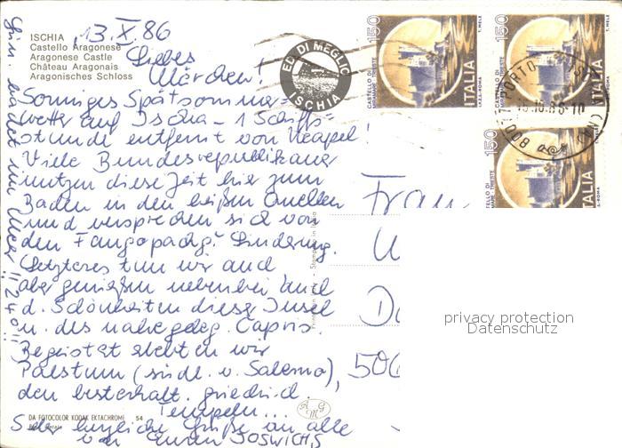 old postcard Ischia Aragonisches Schloss postalisch gelaufen Erhaltung siehe scans
