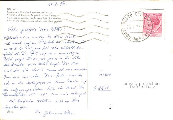 old postcard Ischia Aragonisches Schloss Fliegeraufnahme postalisch gelaufen Erhaltung siehe scans