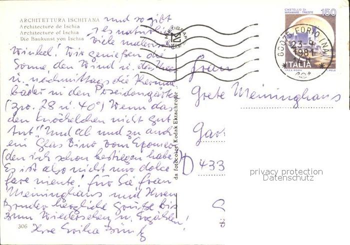 old postcard Ischia Architettura Ischittana die Baukunst von Ischia postalisch gelaufen Erhaltung siehe scans