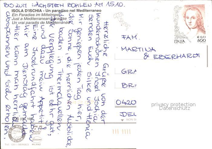old postcard Ischia Casmicciola Lacco Ameno Forio San Angelo postalisch gelaufen Erhaltung siehe scans [KathaD79]