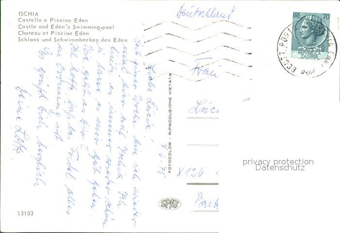 old postcard Ischia Castello e Piscina Eden postalisch gelaufen Erhaltung siehe scans