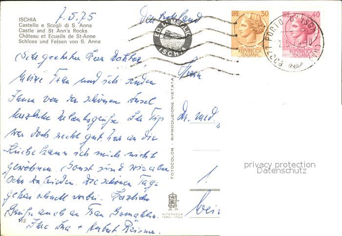 old postcard Ischia Castello e Scogli di S. Anna postalisch gelaufen Erhaltung siehe scans