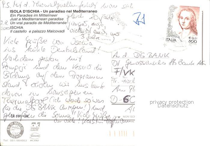 old postcard Ischia Castello palazzo Malcovadi postalisch gelaufen Erhaltung siehe scans