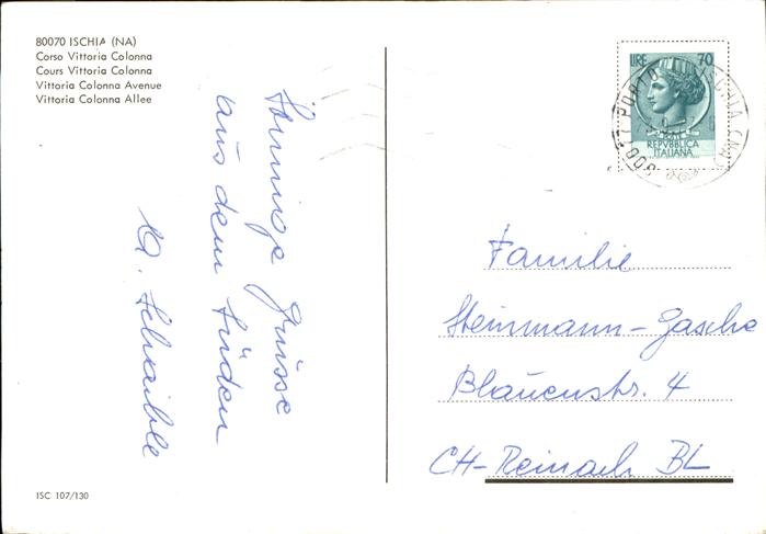 old postcard Ischia Corso Vittoria Colonna Allee postalisch gelaufen Erhaltung siehe scans