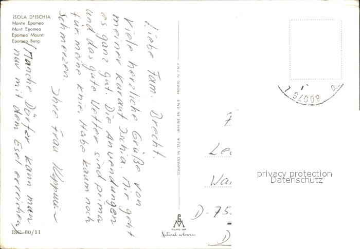 old postcard Ischia Eporneo Berg postalisch gelaufen Erhaltung siehe scans