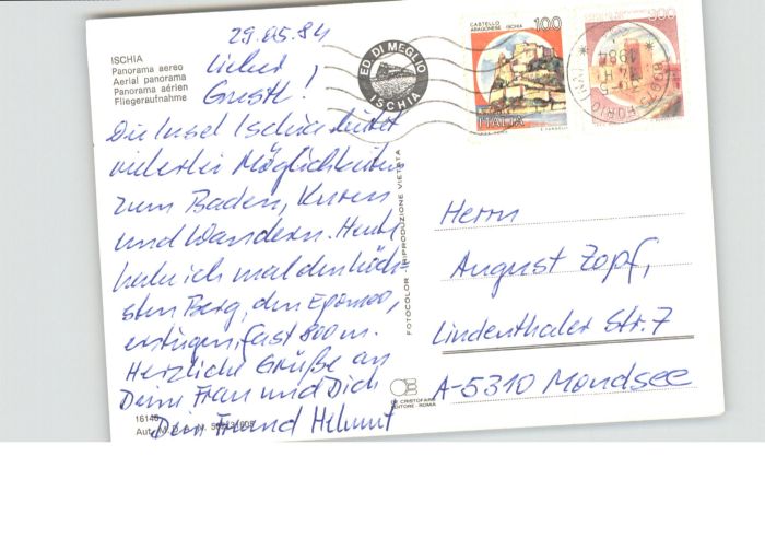 old postcard Ischia Fliegeraufnahme postalisch gelaufen