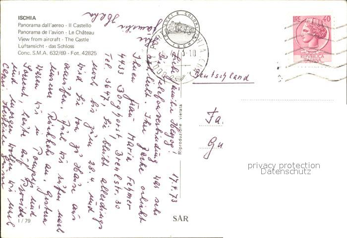 old postcard Ischia Fliegeraufnahme mit Schloss postalisch gelaufen Erhaltung siehe scans