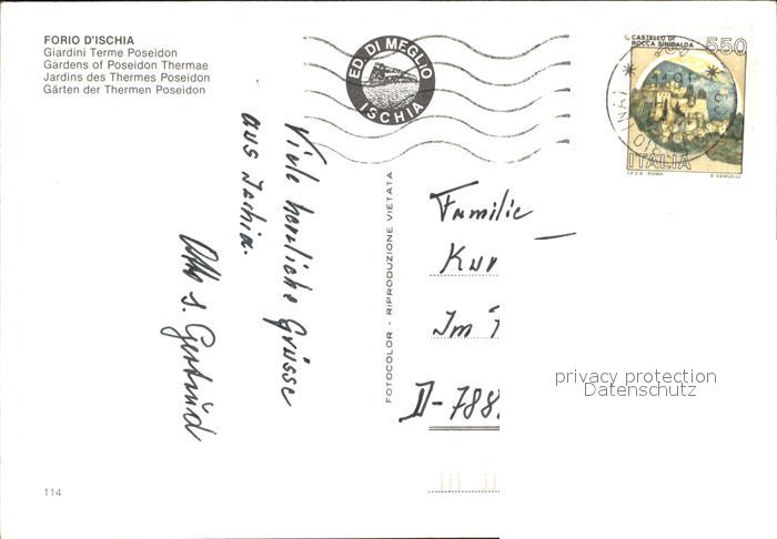 old postcard Ischia Gaerten der Thermen Poseidon postalisch gelaufen Erhaltung siehe scans