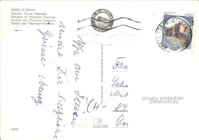 old postcard Ischia Gaerten der Thermen Poseidon postalisch gelaufen Erhaltung siehe scans