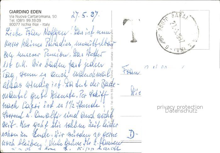 old postcard Ischia Garten Eden postalisch gelaufen Erhaltung siehe scans