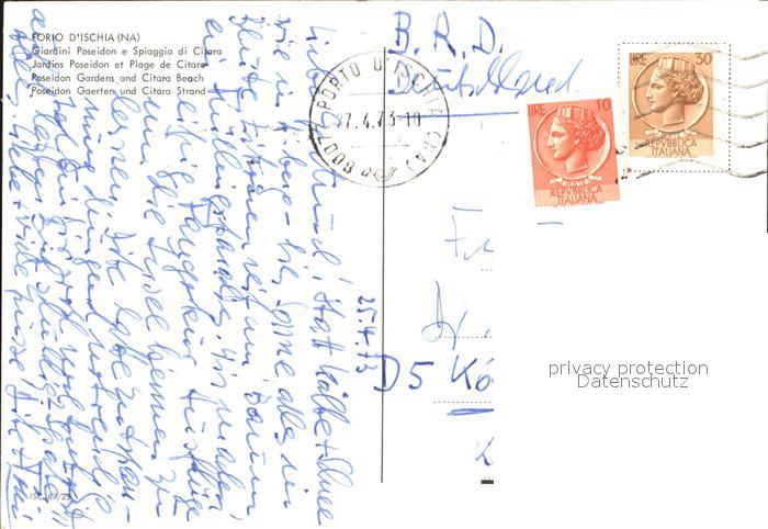 old postcard Ischia Giardini Poseidon e Spiaggia di Citara postalisch gelaufen Erhaltung siehe scans