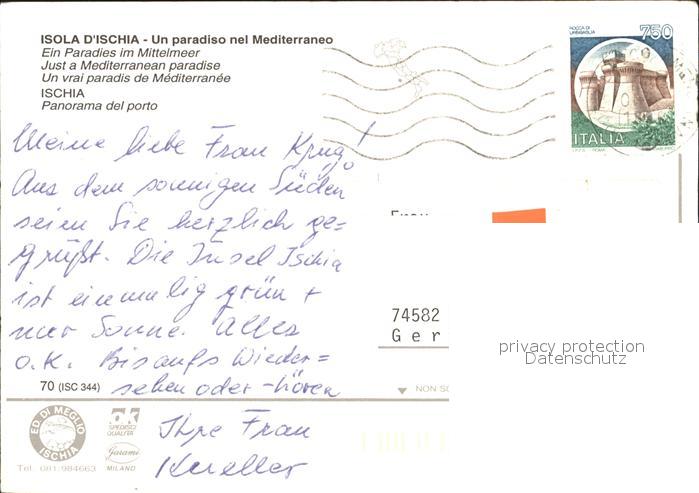 old postcard Ischia Hafen postalisch gelaufen Erhaltung siehe scans