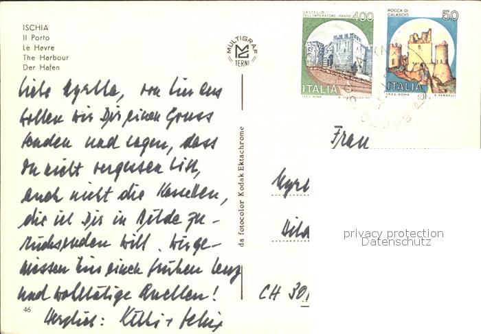 alte Postkarte Ischia Hafen postalisch gelaufen Erhaltung siehe scans