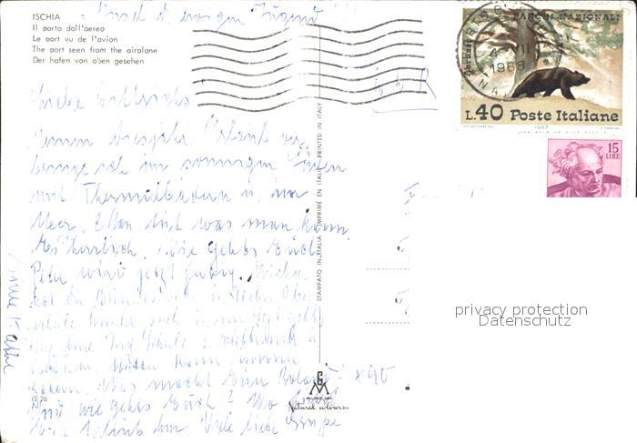 old postcard Ischia Hafen Fliegeraufnahme postalisch gelaufen Erhaltung siehe scans