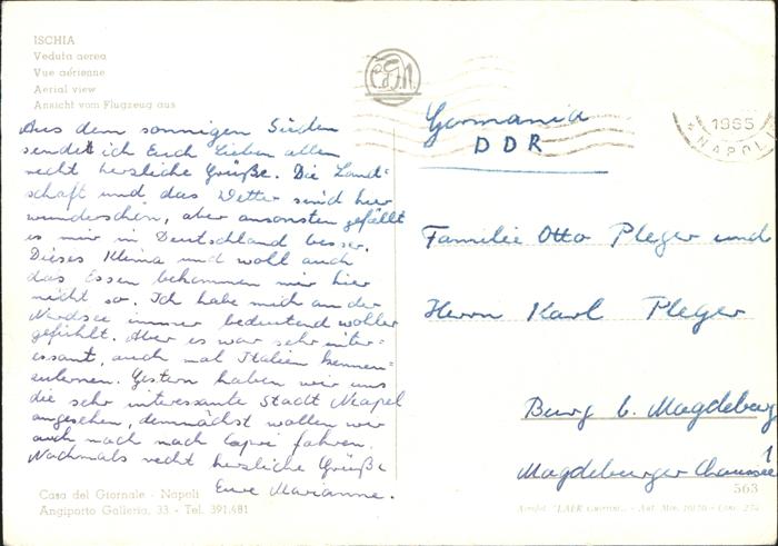 old postcard Ischia Hafen Fliegeraufnahme postalisch gelaufen Erhaltung siehe scans