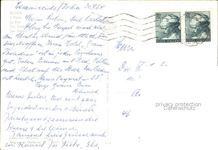 old postcard Ischia Hafen Luftbild postalisch gelaufen Erhaltung siehe scans