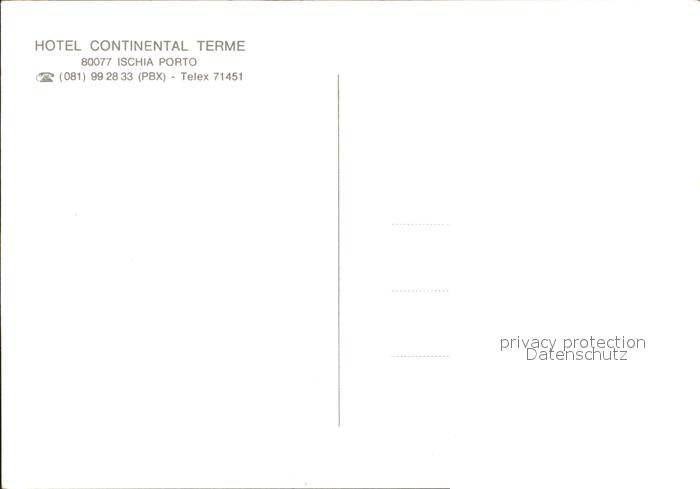 Ischia Hotel Continental Terme postalisch nicht gelaufen Erhaltung siehe scans