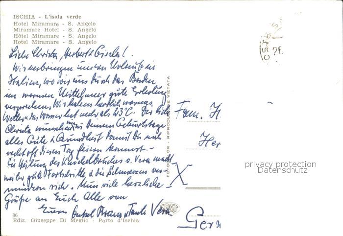 old postcard Ischia Hotel Miramare S. Angelo Strand postalisch gelaufen Erhaltung siehe scans