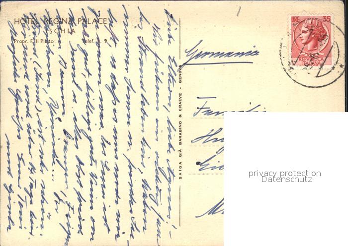 alte Postkarte Ischia Hotel Regina Palace postalisch gelaufen Erhaltung siehe scans [NatalD47]