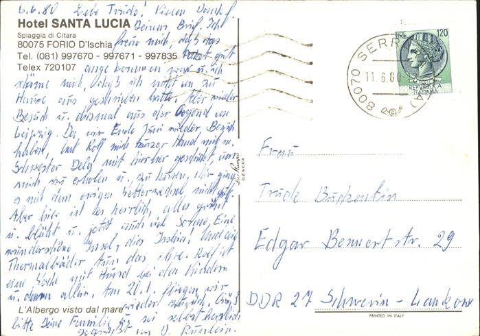 old postcard Ischia Hotel Santa Lucia postalisch gelaufen