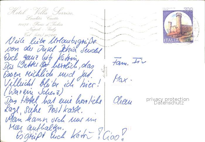 old postcard Ischia Hotel Villa Sorriso postalisch gelaufen Erhaltung siehe scans