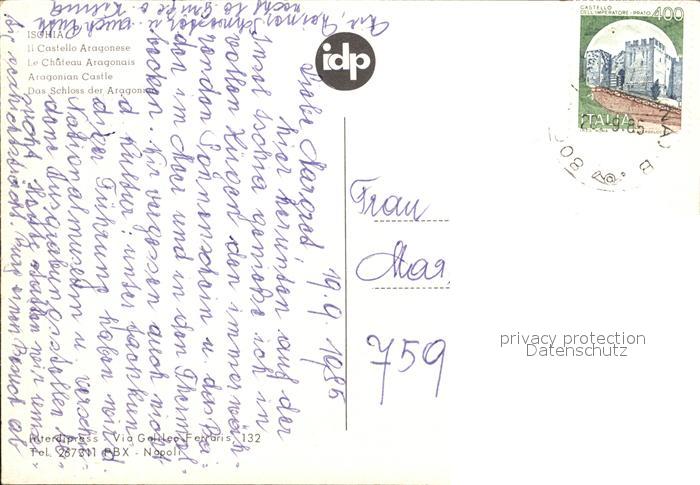 old postcard Ischia Il Castello Aragonese postalisch gelaufen Erhaltung siehe scans