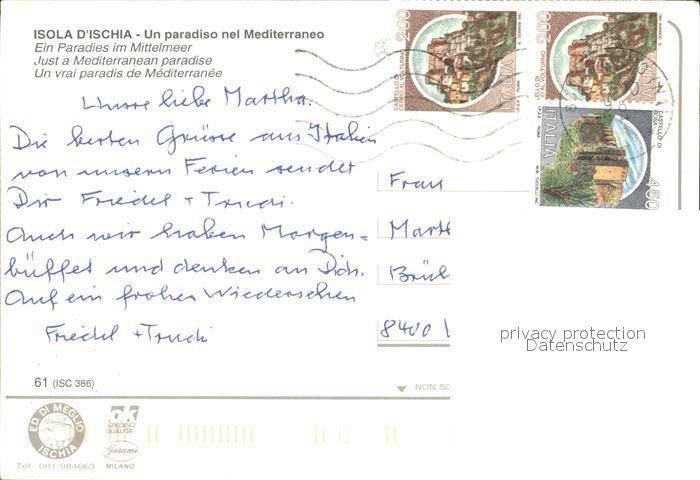 old postcard Ischia Insel Paradies im Mittelmeer Segelboote Panorama postalisch gelaufen Erhaltung siehe scans