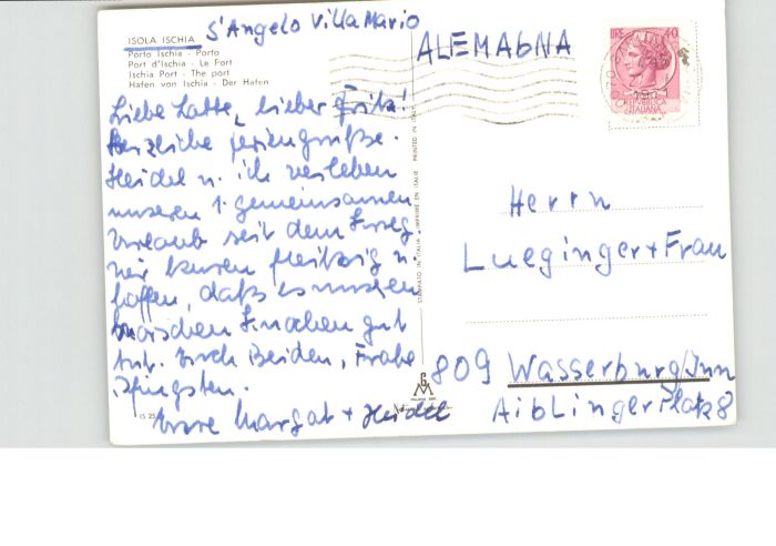 old postcard Ischia Isola Porto Hafen postalisch gelaufen